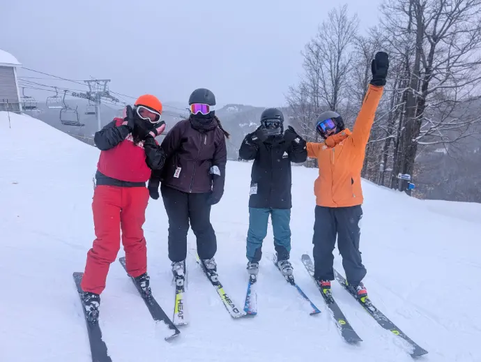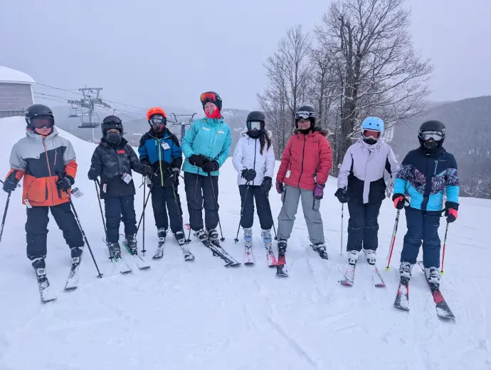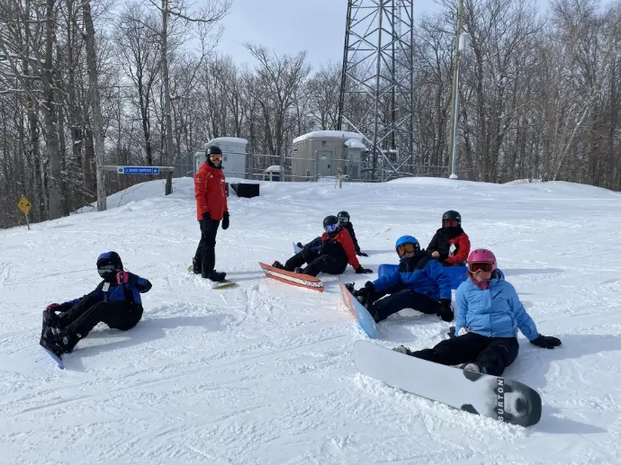Morin Heights has multiple chairlifts. The Soleil chair is the easiest, especially for smaller students. There is a green run, off of each chair with the exception of the Kicking Horse chair. If the Kicking horse chair is open, you need permission from a supervisor to go to that section as the terrain is significantly more challenging.